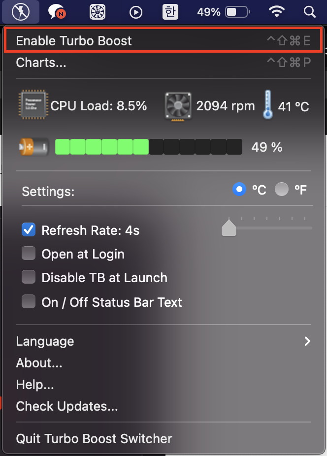 간단하게 버튼 하나만 ( Enable Turbo Boost / Disable Turbo Boost ) 생각하시면 됩니다.
