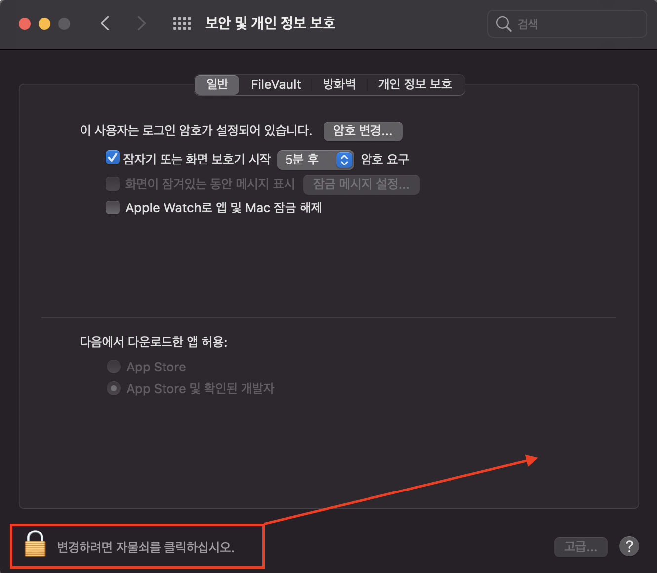 시스템 환경설정 => 보안 및 개인정보 보호 => 일반 => 아래 자물쇠 해제 (비밀번호 요구) => 차단된 소프트웨어 오른쪽 허용버튼