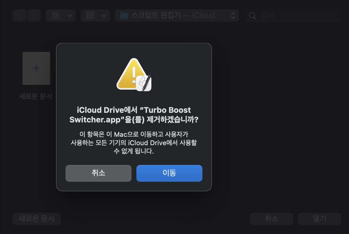 저만 뜨는진 모르겠지만, iCloud Drive에서 옮길 때 경고가 뜬다면 그냥 이동 누르시면 됩니다.