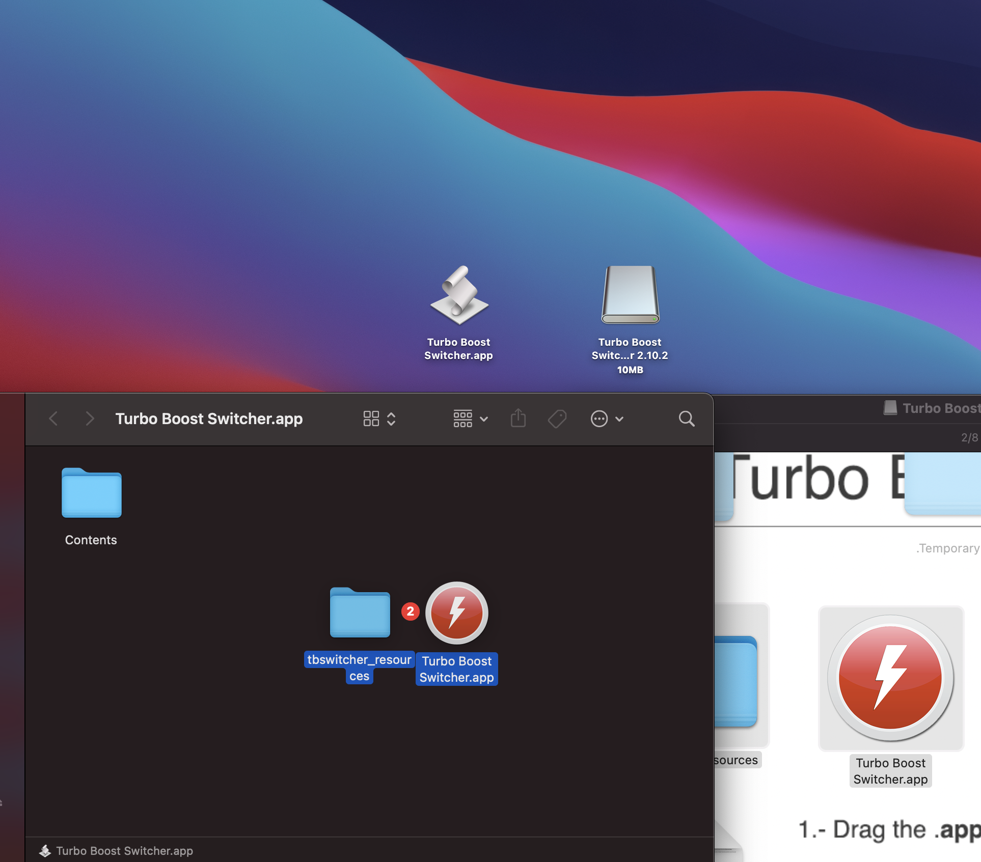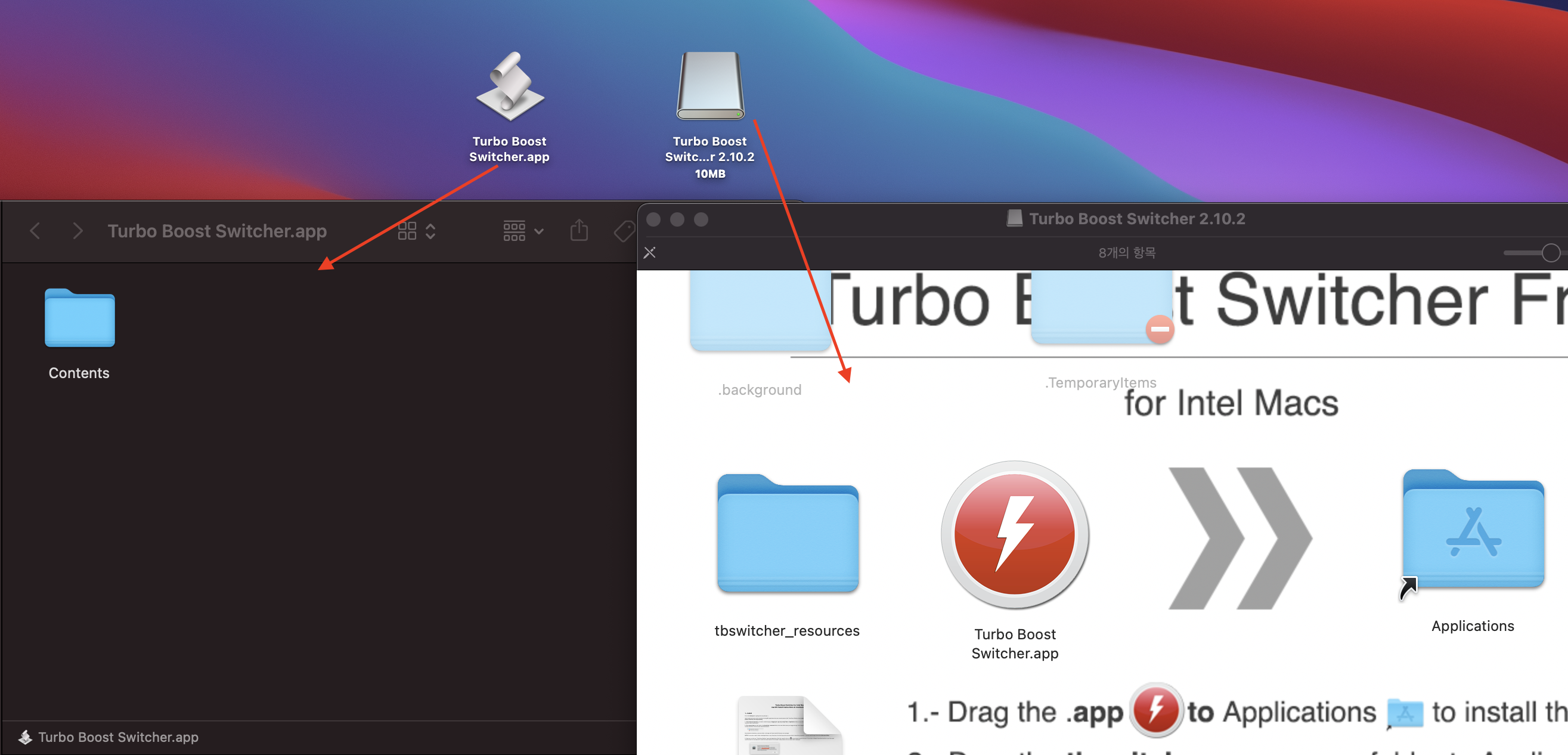 tbswitcher_resources, Turbo Boost Switcher.app 2개의 파일을 Applications가 아닌,